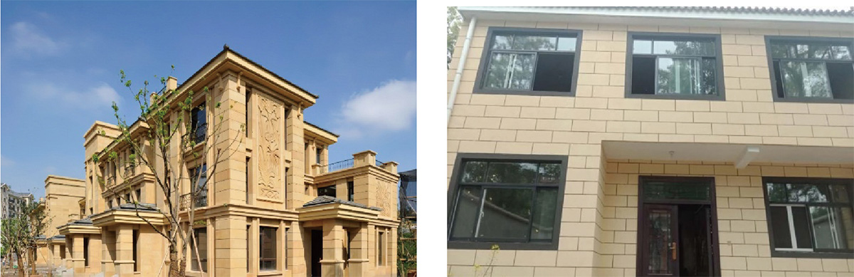 为了仿石材效果更加突出,仿制干挂大理石的效果,建议使用凹槽(深槽)工艺。铝合金凹槽,深缝工艺的别墅翻新,别墅项目感觉更加豪华,大气,上档次。整体的质量效果可以和干挂石材相媲美。