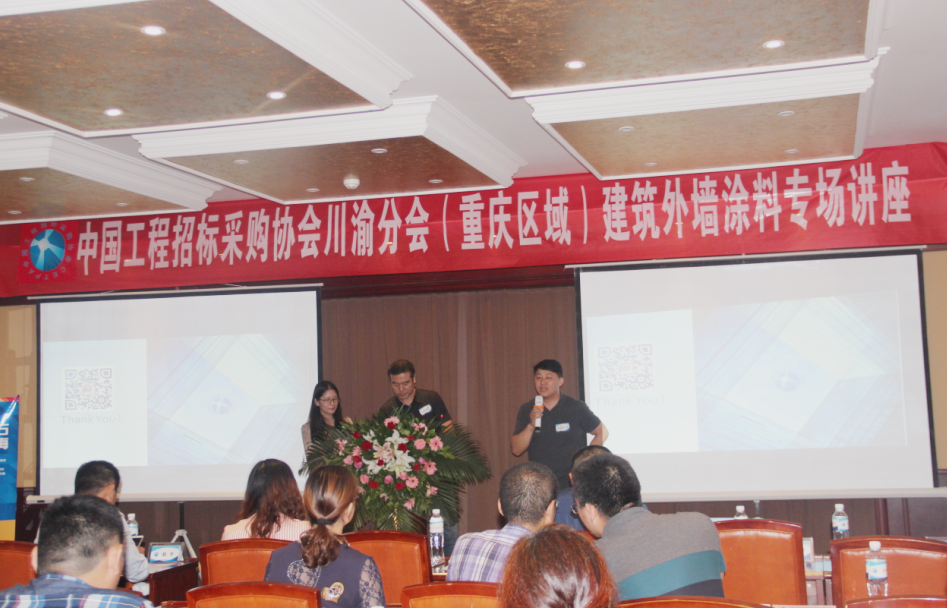 随着2016年已过大半,在涂料各个企业仍在持续努力,争取年底完美收官的大形势下,为了更好互动学习,业内各种峰会及专业交流会颇受欢迎,J9国际站登录近日出席由中国工程招标采购协会川渝分会举办的建筑外墙涂料专场讲座,在现场通过互动交流,与来自重庆区域的各知名房企、装饰工程企业高层进行了深入沟通。