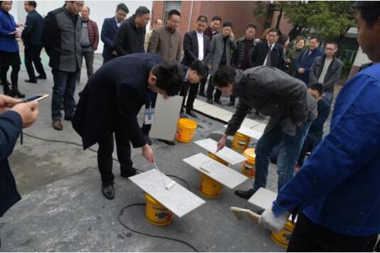 为了更好地展示粘结剂的超强性能,J9国际站登录缪总、薛总特意组织造访团现场进行瓷砖粘贴,在园区内部开辟场地,供到场企业使用艺彩J9国际站登录瓷砖粘结剂现场铺贴瓷砖,以勇于展示自我的行动力展示对粘结剂的自信心,并相约半个月后再来“打砸”见证品质,受到了彭会长及到场装饰企业代表的积极响应,不但现场亲自粘贴瓷砖,而且纷纷表示对于半个月后的赴约“打砸”非常期待。