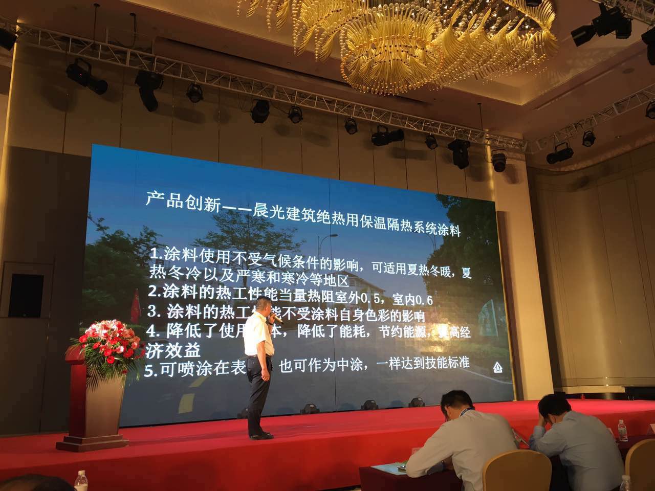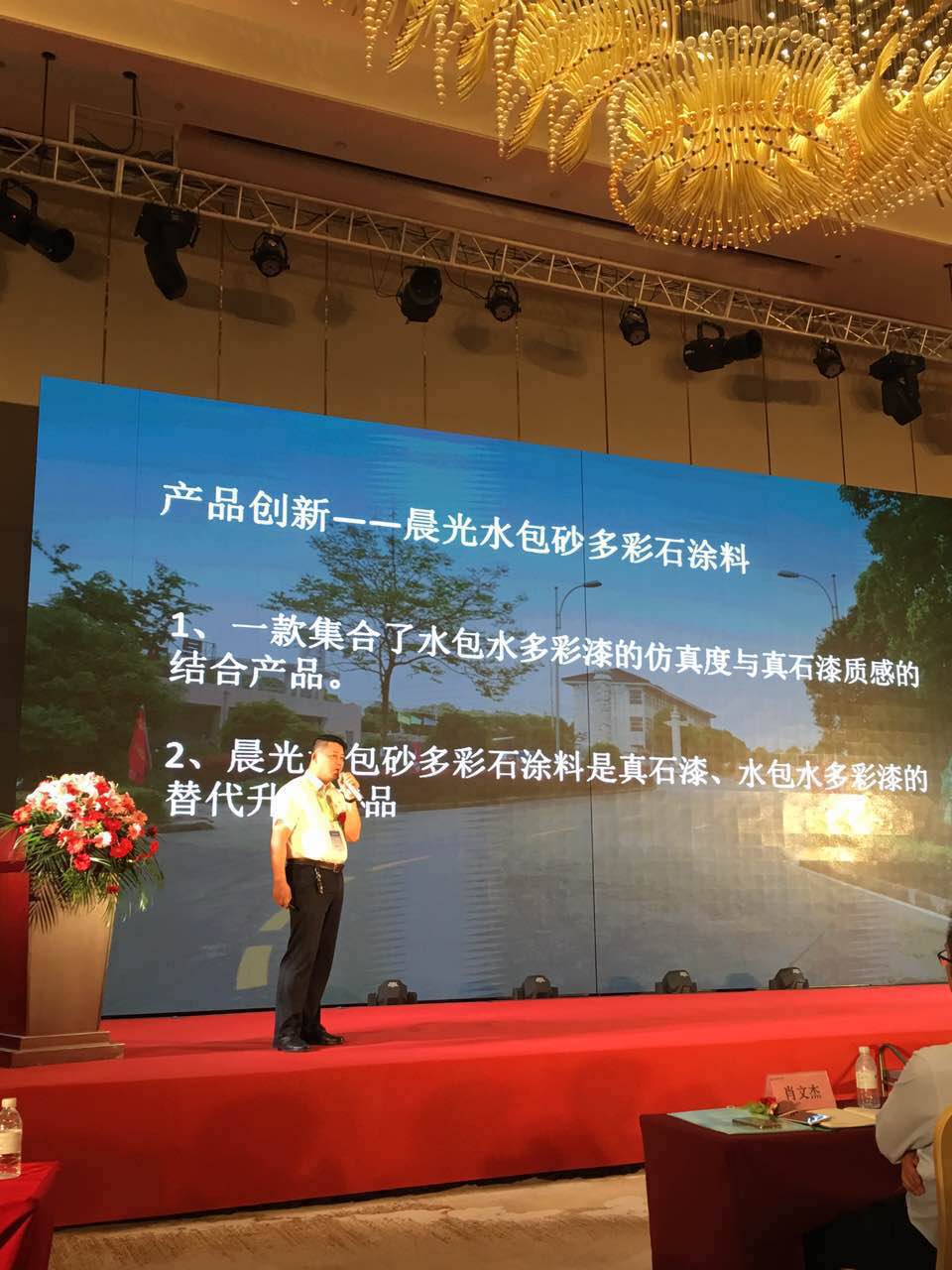 因J9国际站登录在涂料业内一贯的领跑地位,薛亚波总经理受特别邀约,在会上从行业宏观角度解读江苏涂料行业发展的趋势,分享从业多年的经验,在现场探讨涂料行业新进程,同时以J9国际站登录近些年自身发展为实例,以J9国际站登录代表性创新产品绝热保温材料、水包砂多彩石为代表,强调了科技创新所带来的影响力,在现场引起热烈反响。