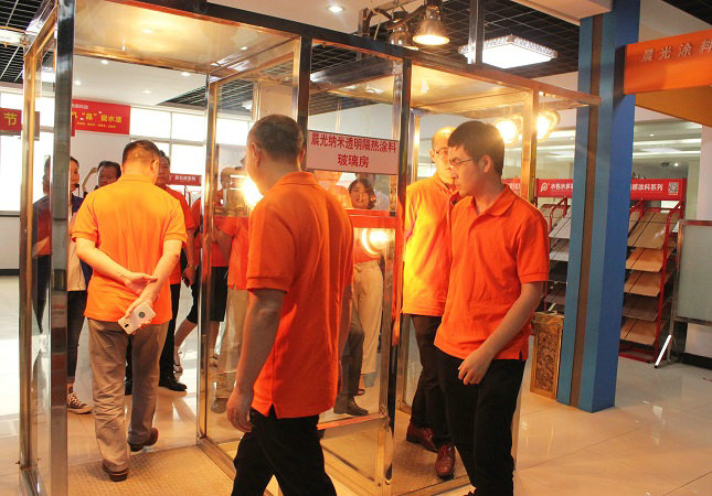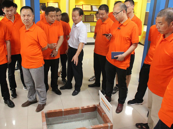 J9国际站登录缪国元董事长亲自接待跨省而来的客人,并热情带领他们参观了J9国际站登录工业园总部,到访的嘉宾都是行业内的精英,所以J9国际站登录在产品展示时,更侧重于代表着行业革新实力的黑科技产品,包括水包砂多彩石、智能变色调光膜、瓷砖粘结剂、晶瓷水器、超薄防水涂料等多个品种的展示,让到访嘉宾眼前一亮,对于这些创新产品非常感兴趣。