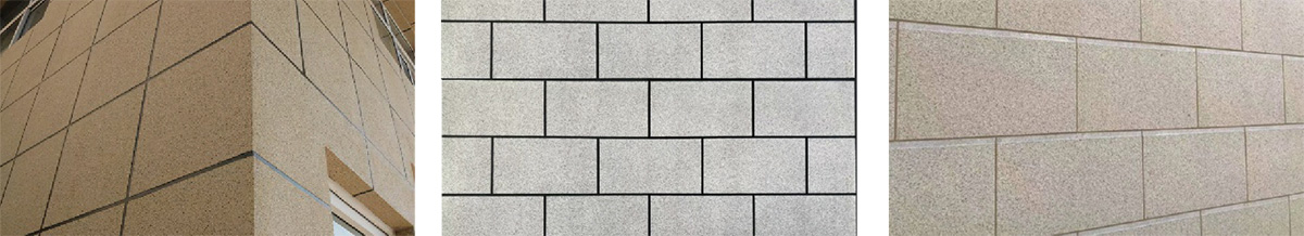 原则上不使用18mm以上的线条宽度,太小的线条宽度无法体现分格效果,太大的线条宽度无法达到仿干挂石材的效果。